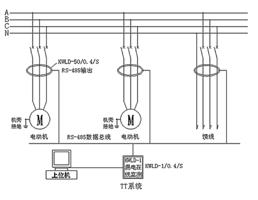 KWLD-6000系列智能漏電監(jiān)測系統(tǒng)主要由 KWLD-1漏電監(jiān)測主機(jī)、KWLD-50/80 智能漏電檢測互感器組成。漏電互感器通過串行總線,將漏電流數(shù)據(jù)上送到監(jiān)測主機(jī),監(jiān)測主機(jī)通過TCP/IP協(xié)議與后臺監(jiān)控計算機(jī)進(jìn)行數(shù)據(jù)交換,實(shí)現(xiàn)通訊組網(wǎng)。并且陰雨天絕緣整體劣化情況自動適應(yīng),采用模糊算法干擾屏蔽,使其工作穩(wěn)定可靠。